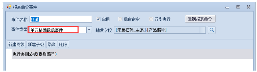 明细表使用无焦捕获规则只能识别到第一行,因为此功能没有办法定位行,所以我们想要明细行有值,使用报表命令中的编辑后事件,将主表的值提取到明细表中