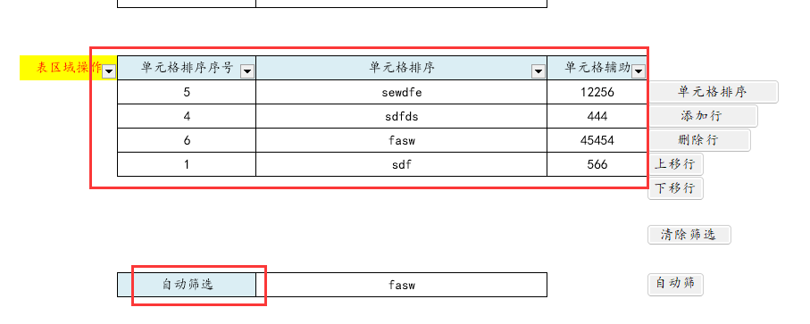 - 表区域操作