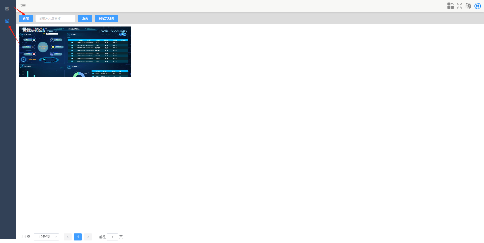 新增后会进入大屏设计界面,界面包含组件区域、布局区域、配置区域