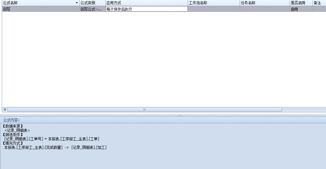 此时建立的回写公式填充的是定量,标题为加工的字段