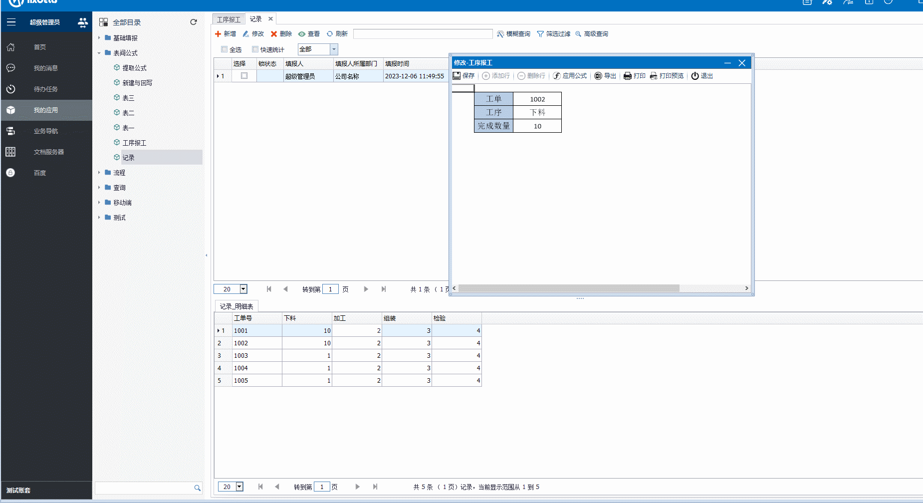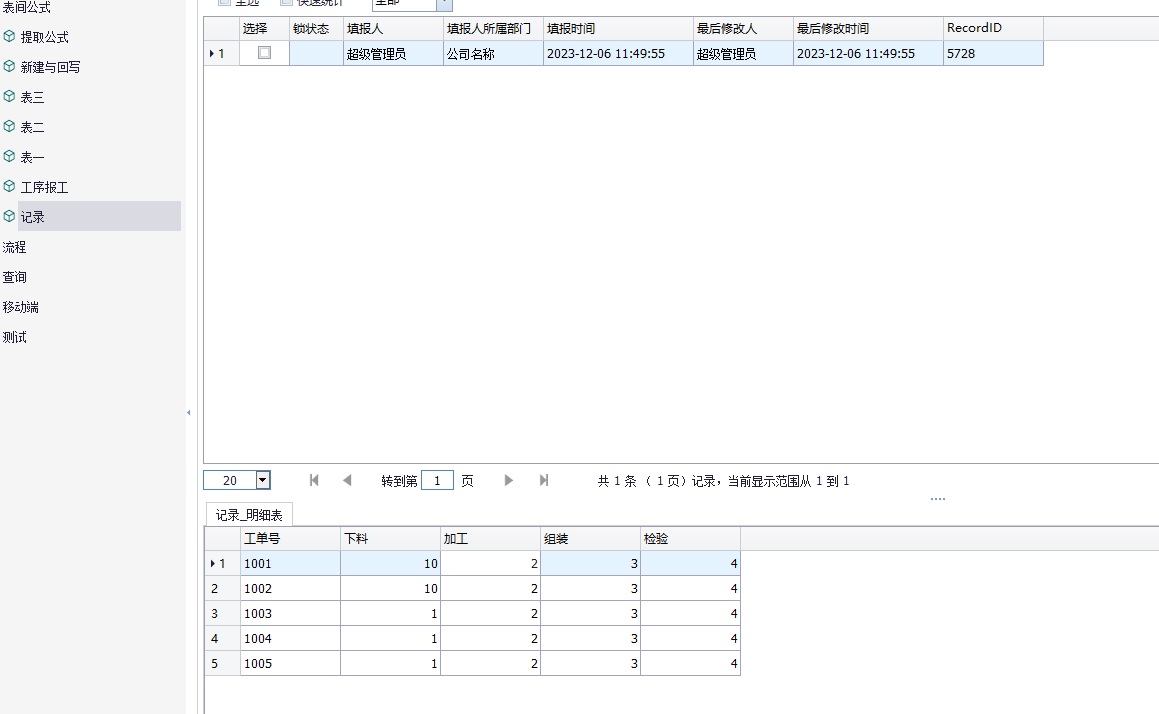 例如:这里我们有一份记录的工序报工的明细表,这里我们要填写报工表时同步修改相应的报工数量。