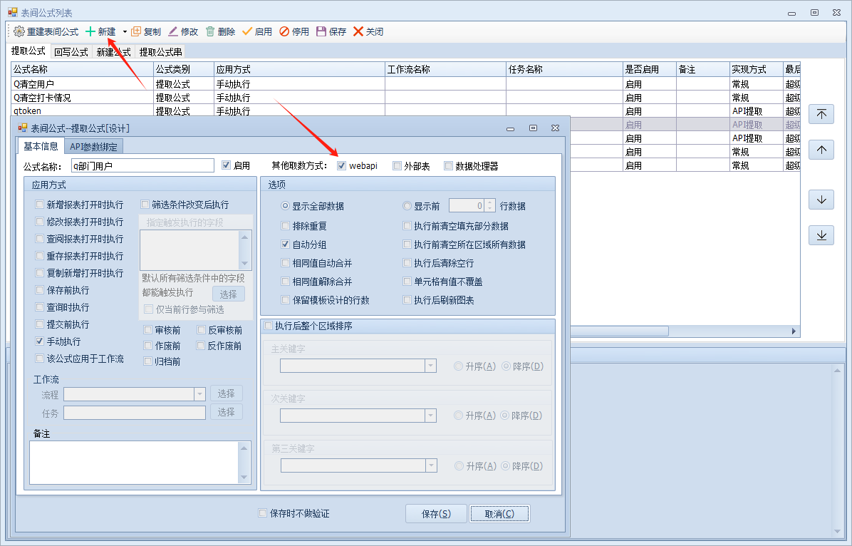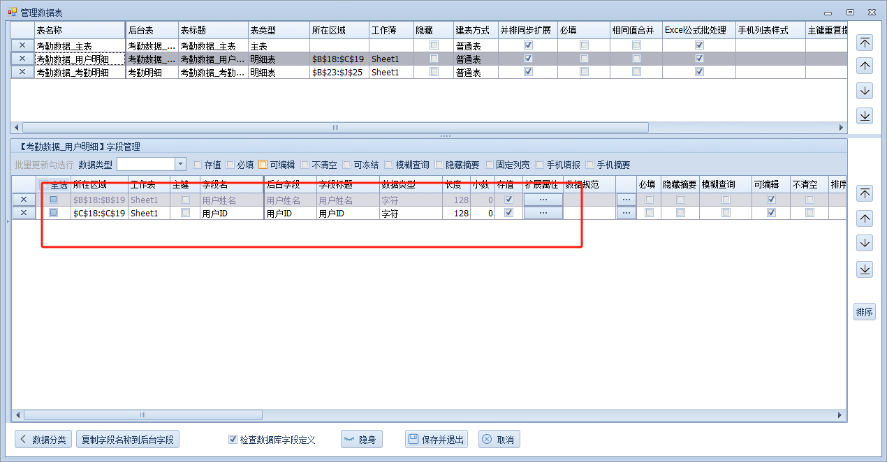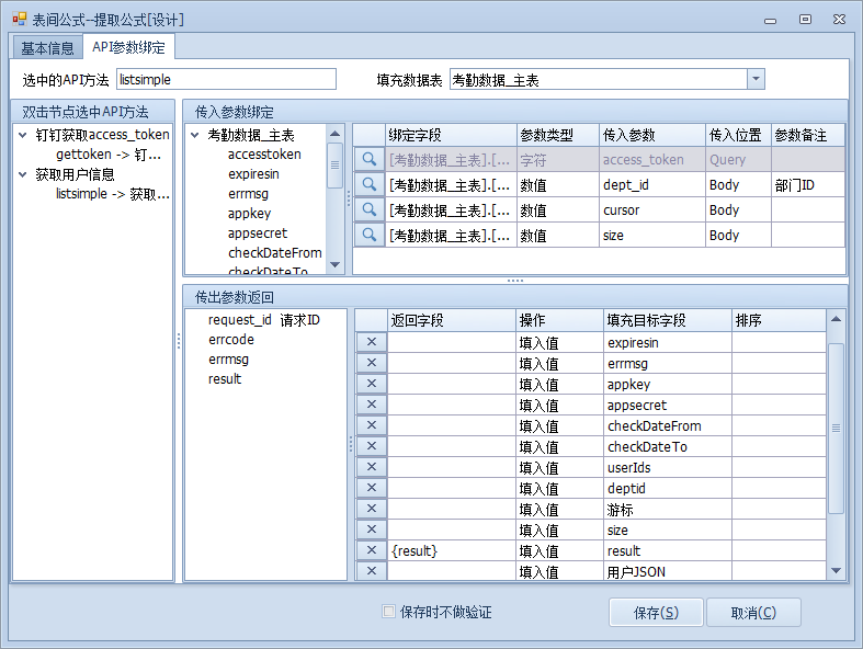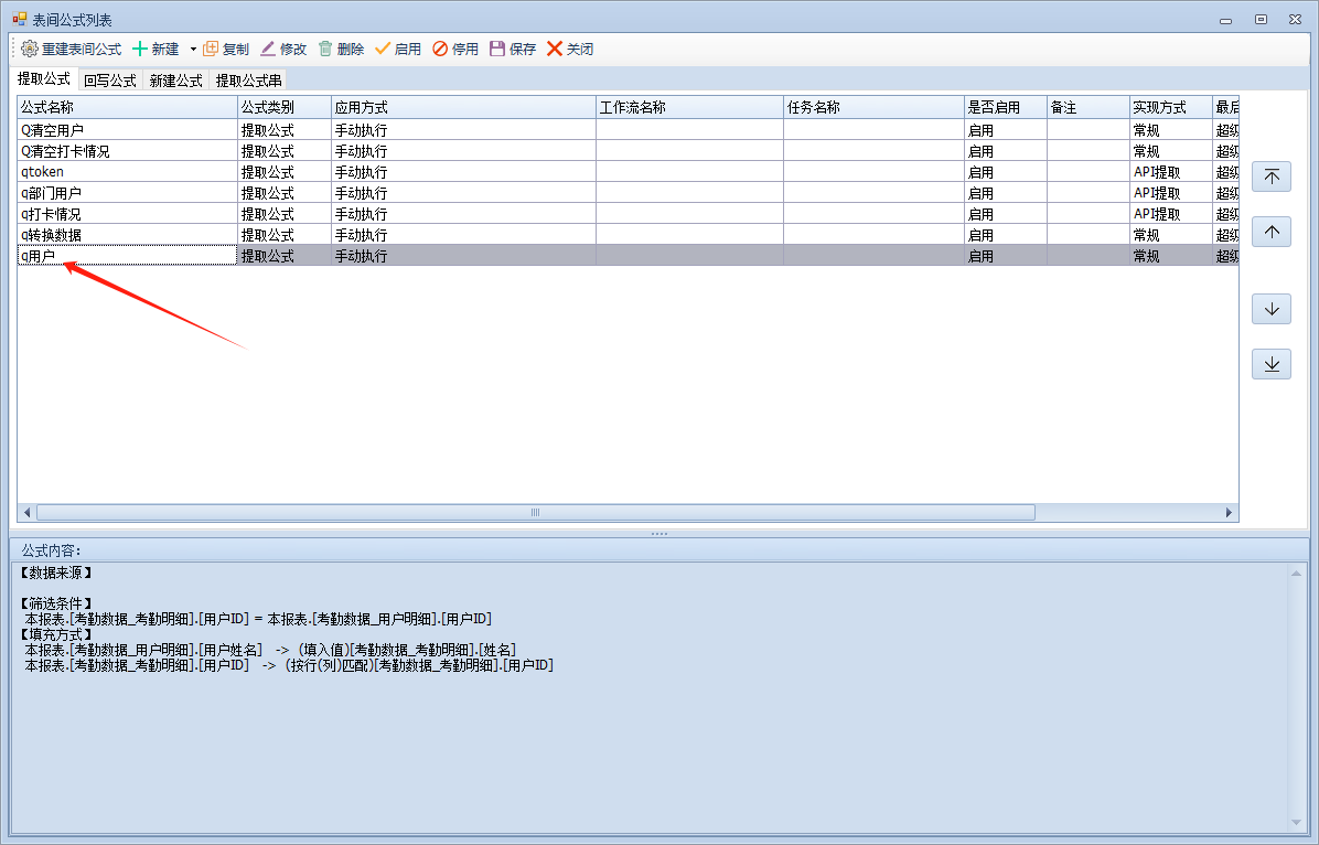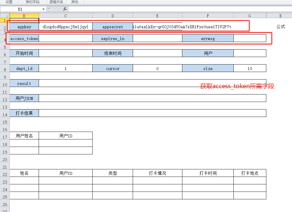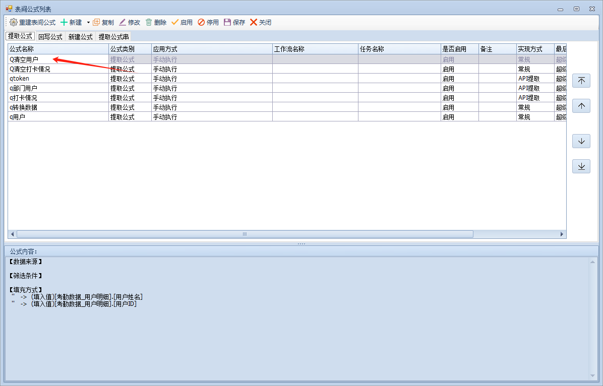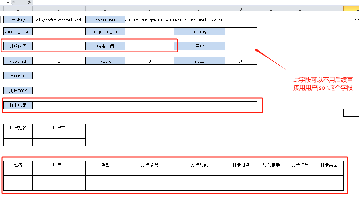 另外这里想要每次查询时用户和考勤数据不重复提取,以及将接口提取的数据转换为我们想要看的数据,这里做了另外的公式进行处理,同时打卡详情获取的只有用户ID,为了方便查看需要做公式提取用户姓名。