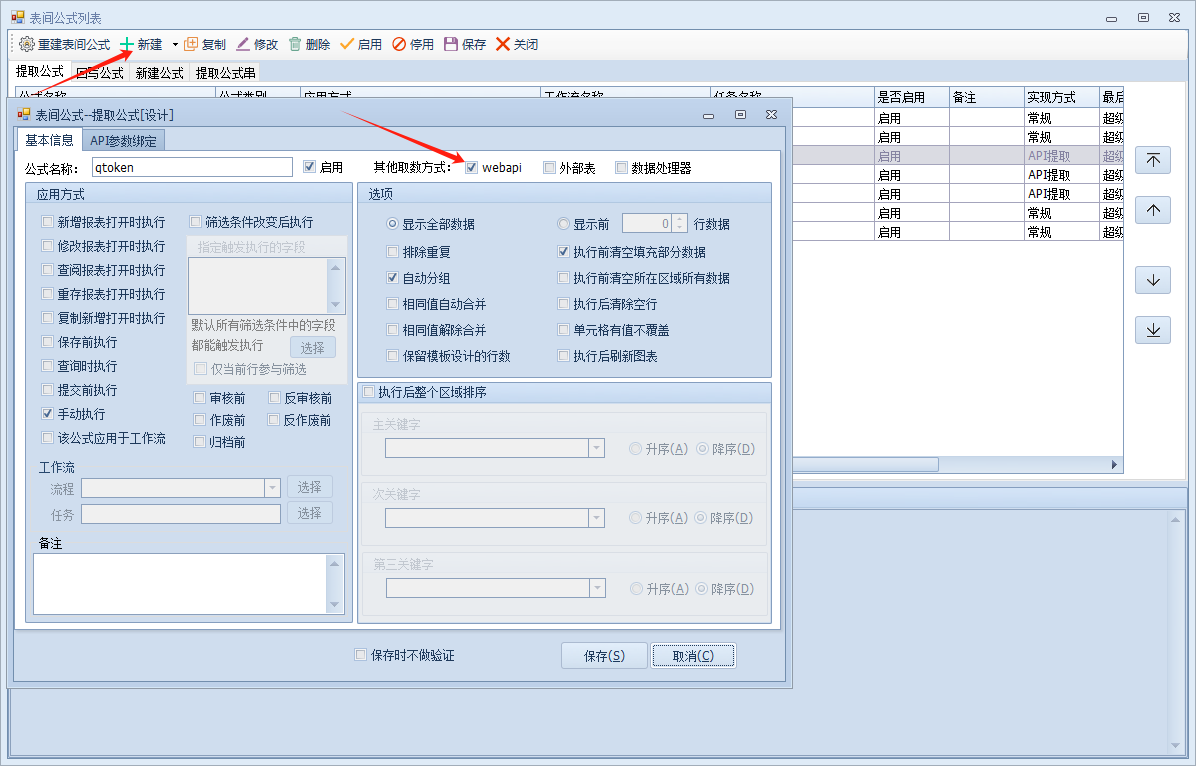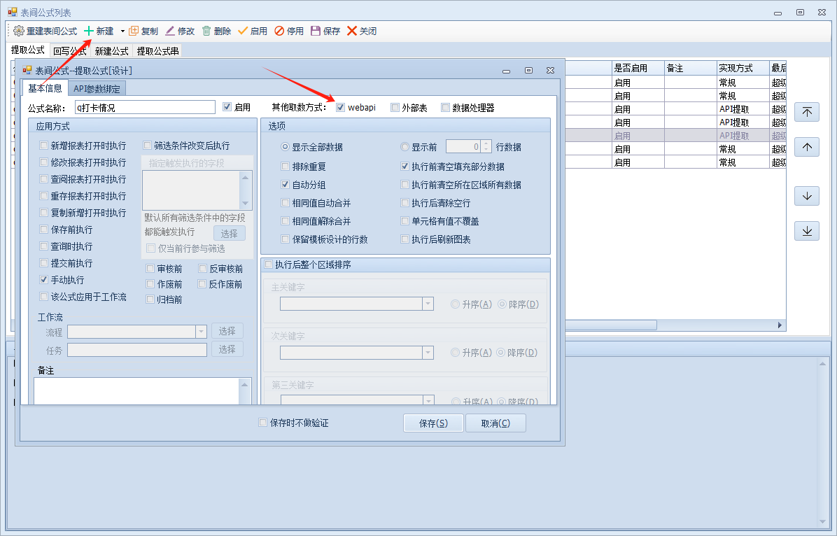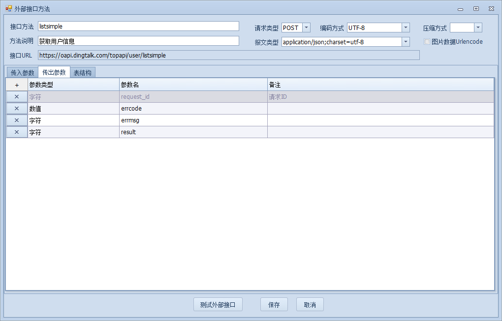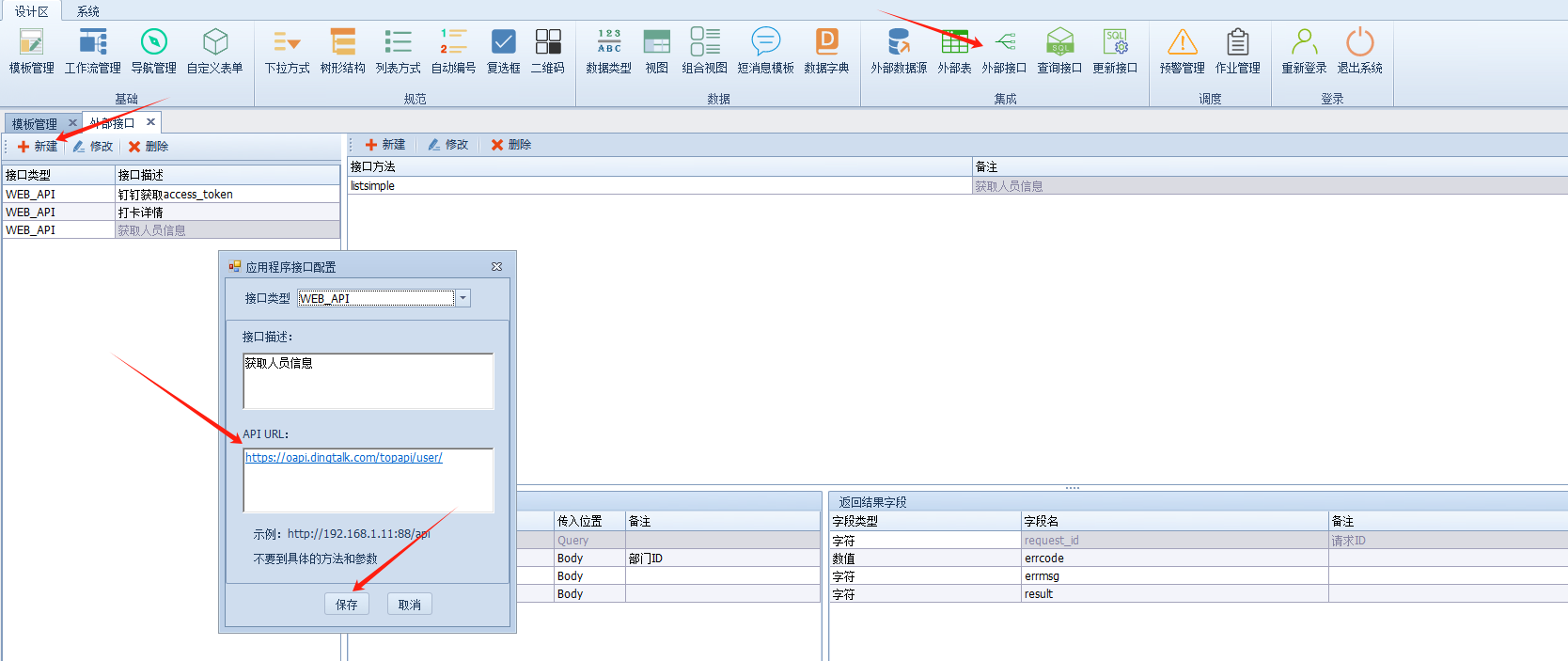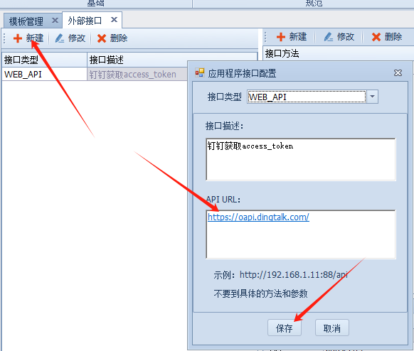 选中建立好的接口通讯,点击【新建】,接口方法、请求类型以及传入、传出参数、表结构在文档中都已明确给到。