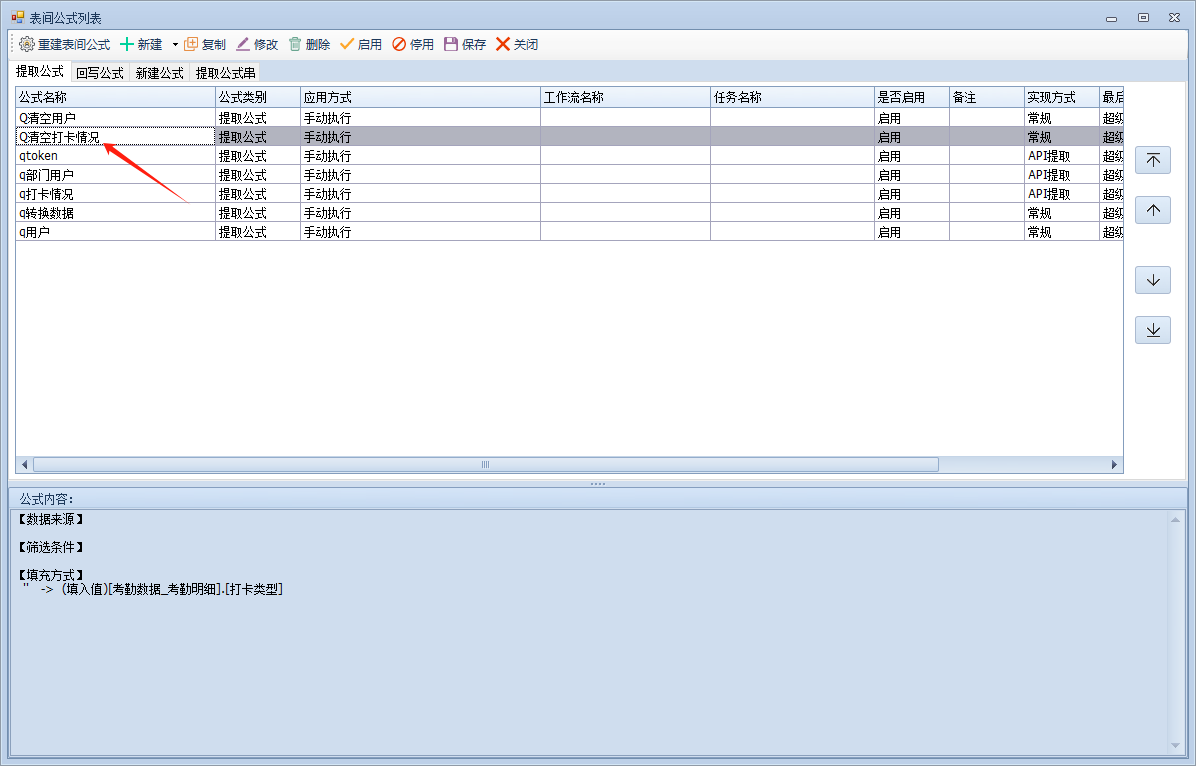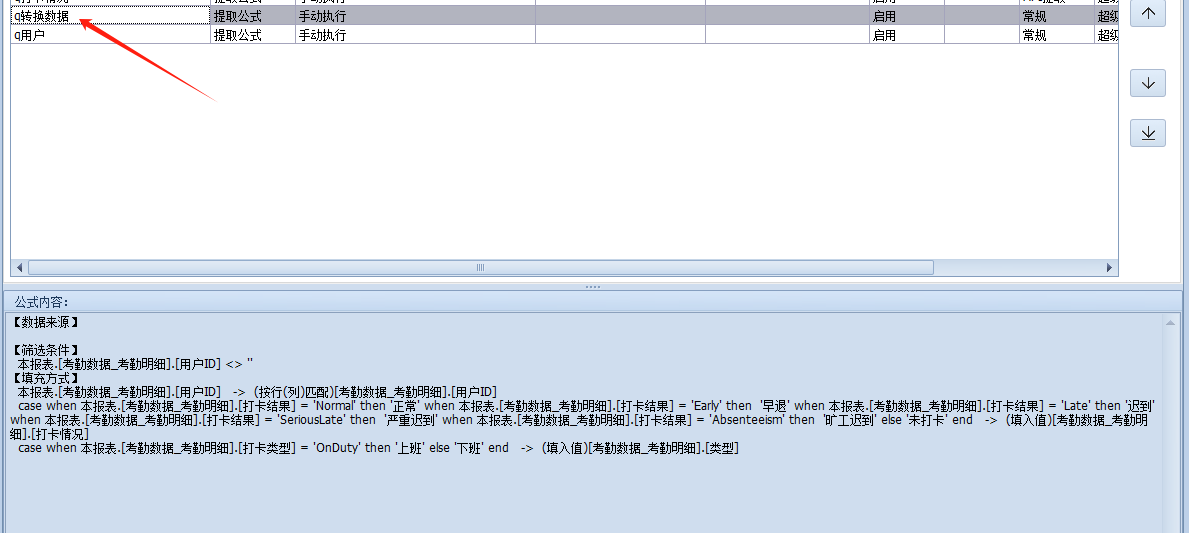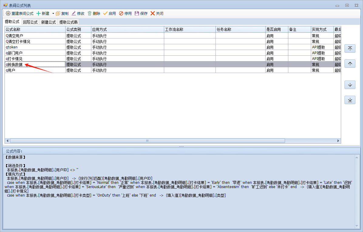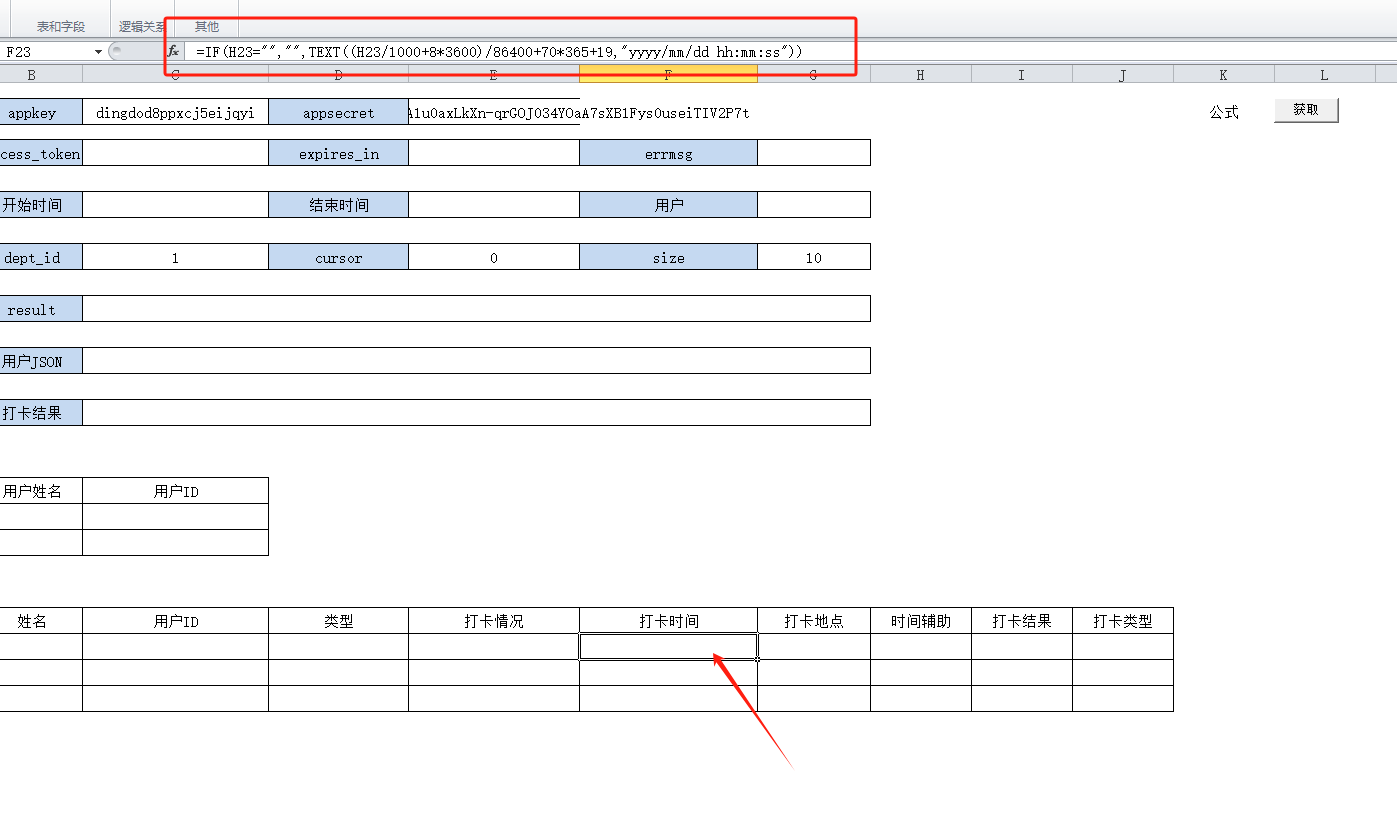 解析数据完成后会发现钉钉上的数据不符合我们想要查询的数据,这里需要将数据进行进一步的处理,例如时间戳,打开类型,打卡情况等,这里做表间公式和excel公式进行转换