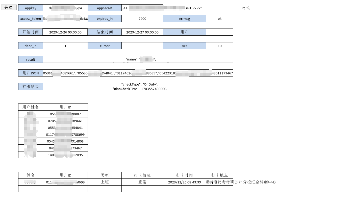 到这里获取打卡详情就完成了,接下来只需要将数据解析到我们的明细表中即可