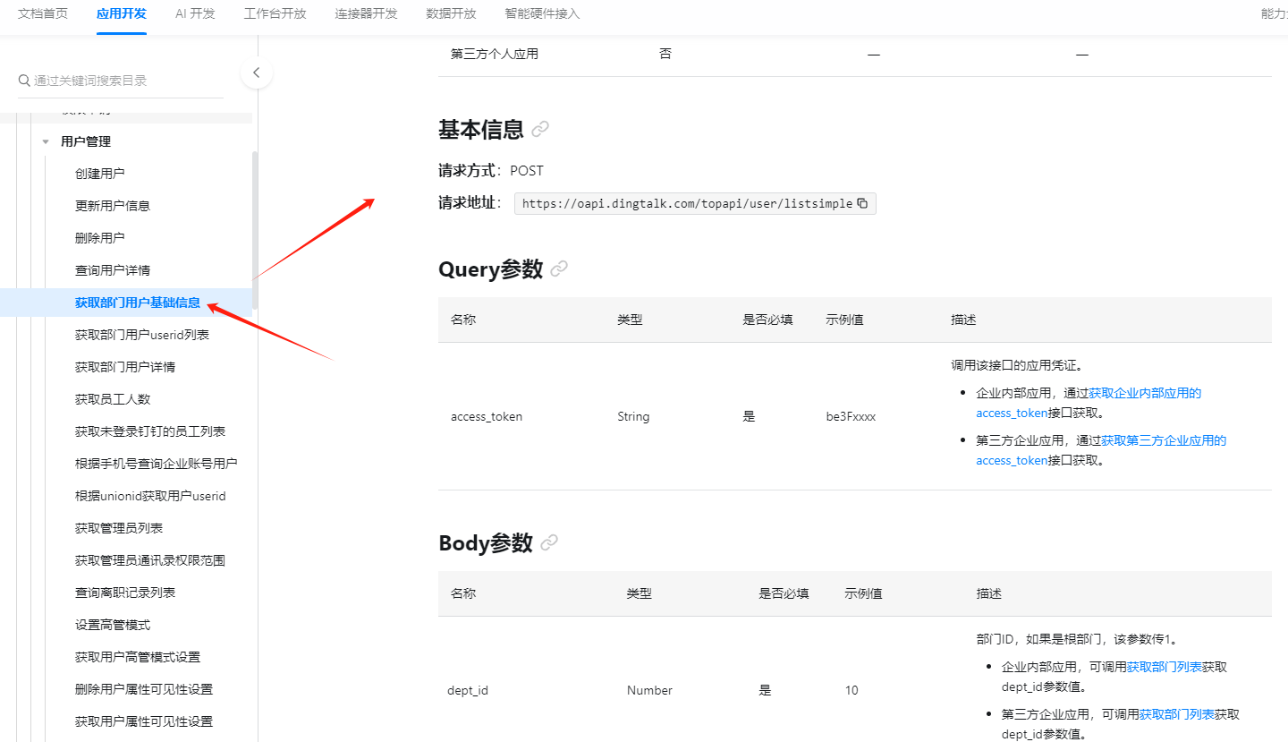 获取用户信息文档地址:https://open.dingtalk.com/document/orgapp/queries-the-simple-information-of-a-department-user