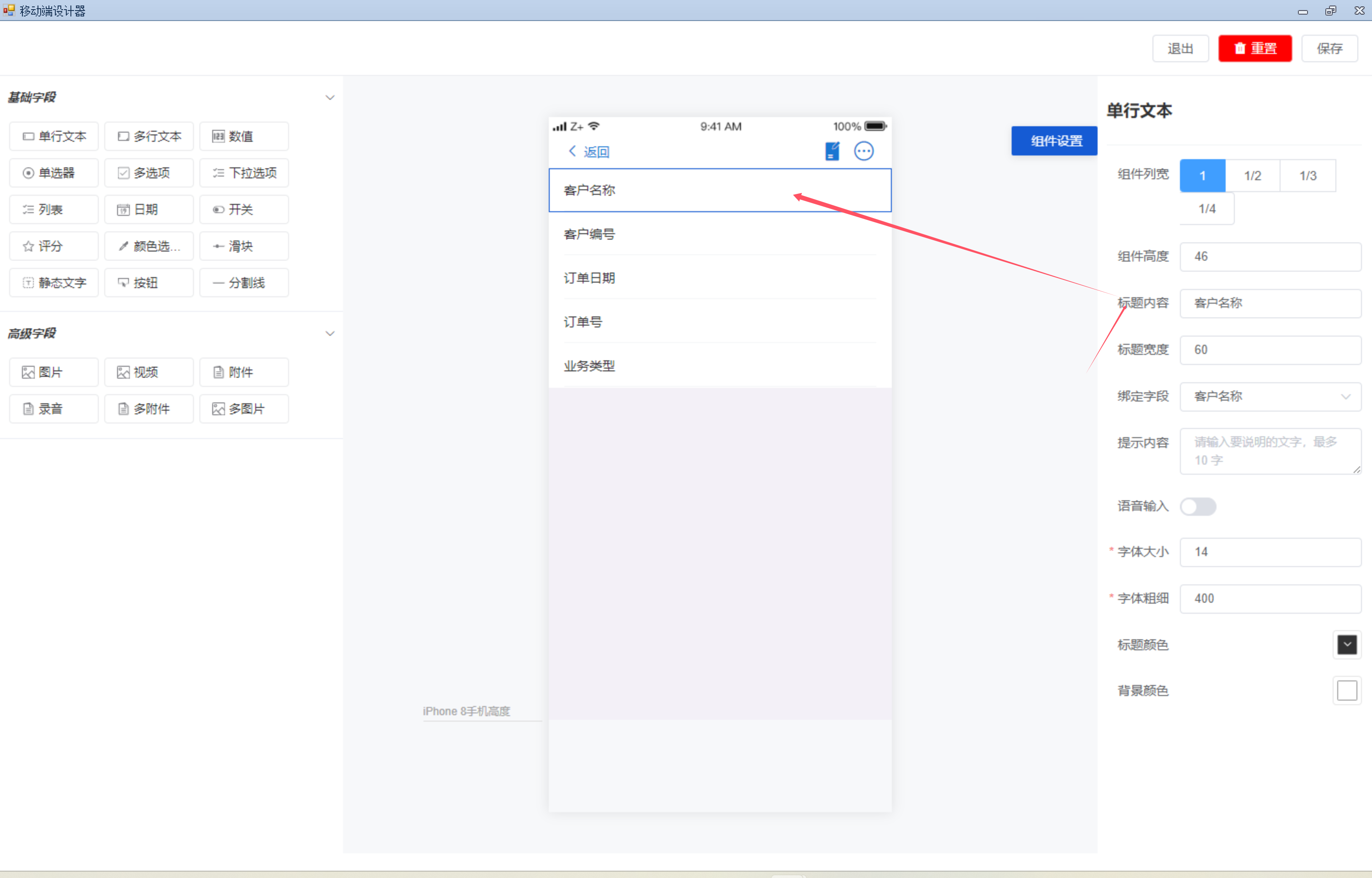 3.设计界面并绑定字段如下(字段应选择对应样式)