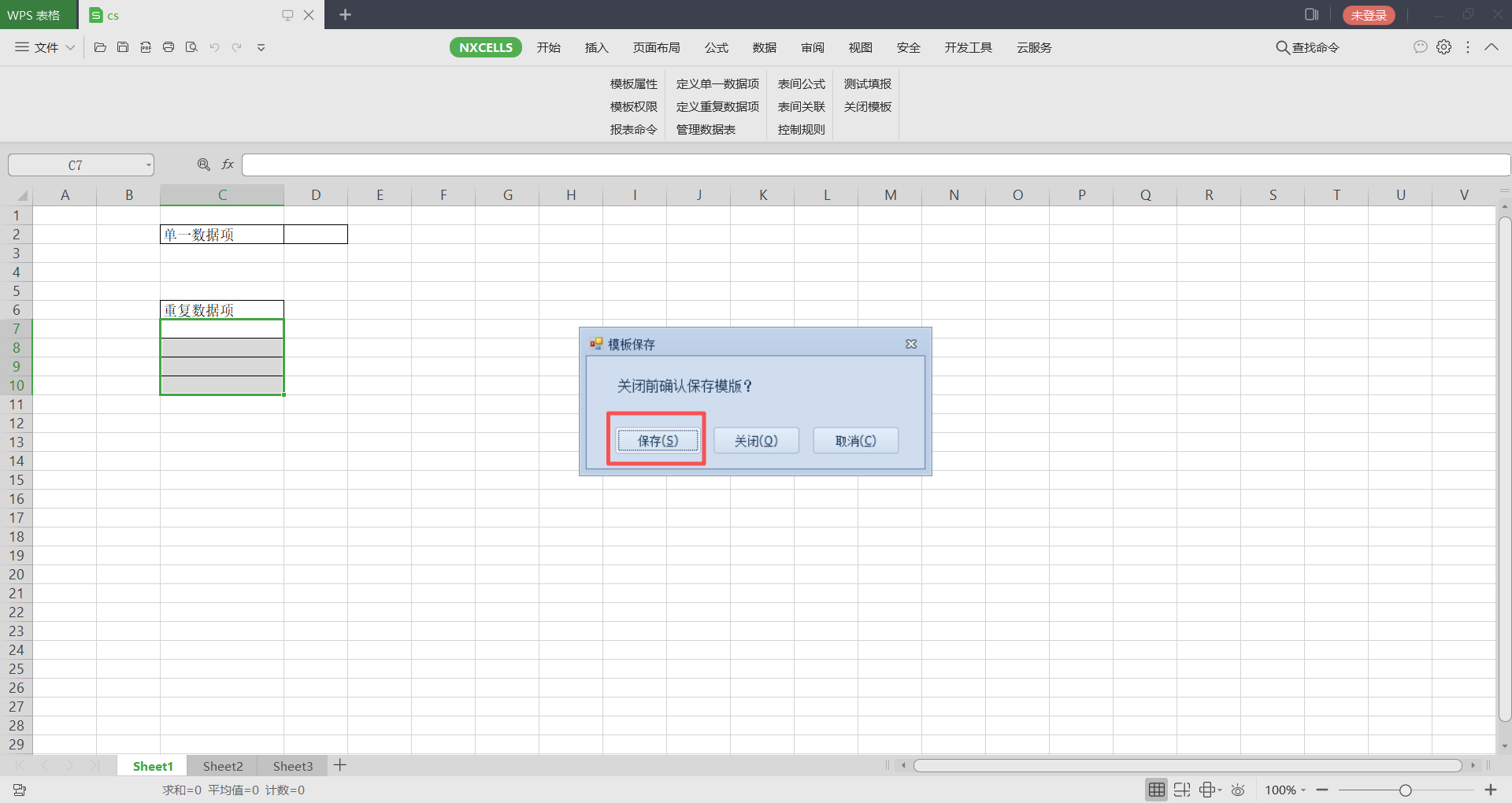 4.建表完成后要保存模板,否则下次会打不开模板