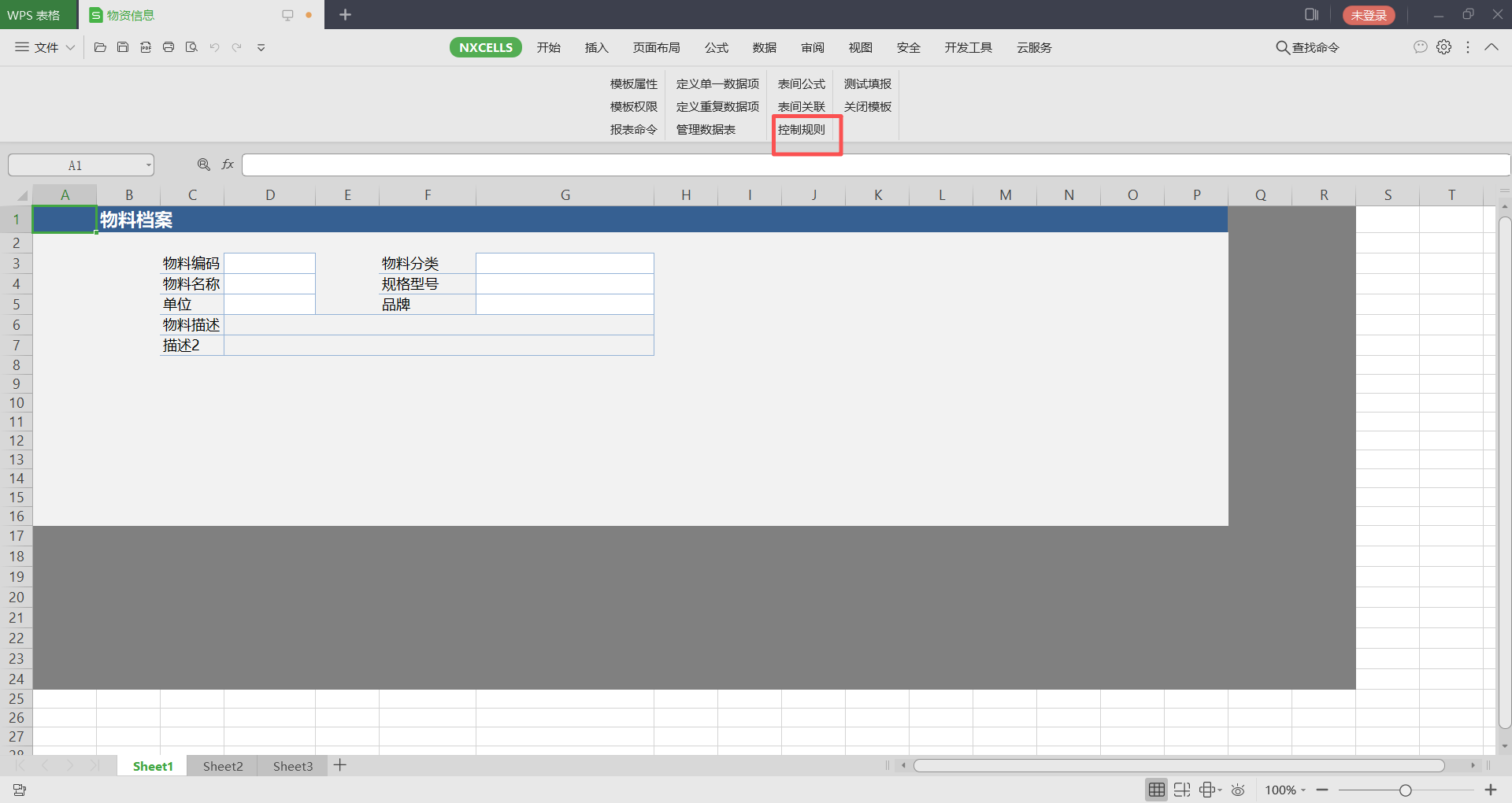 1.打开模板,点击控制规则,点击新增