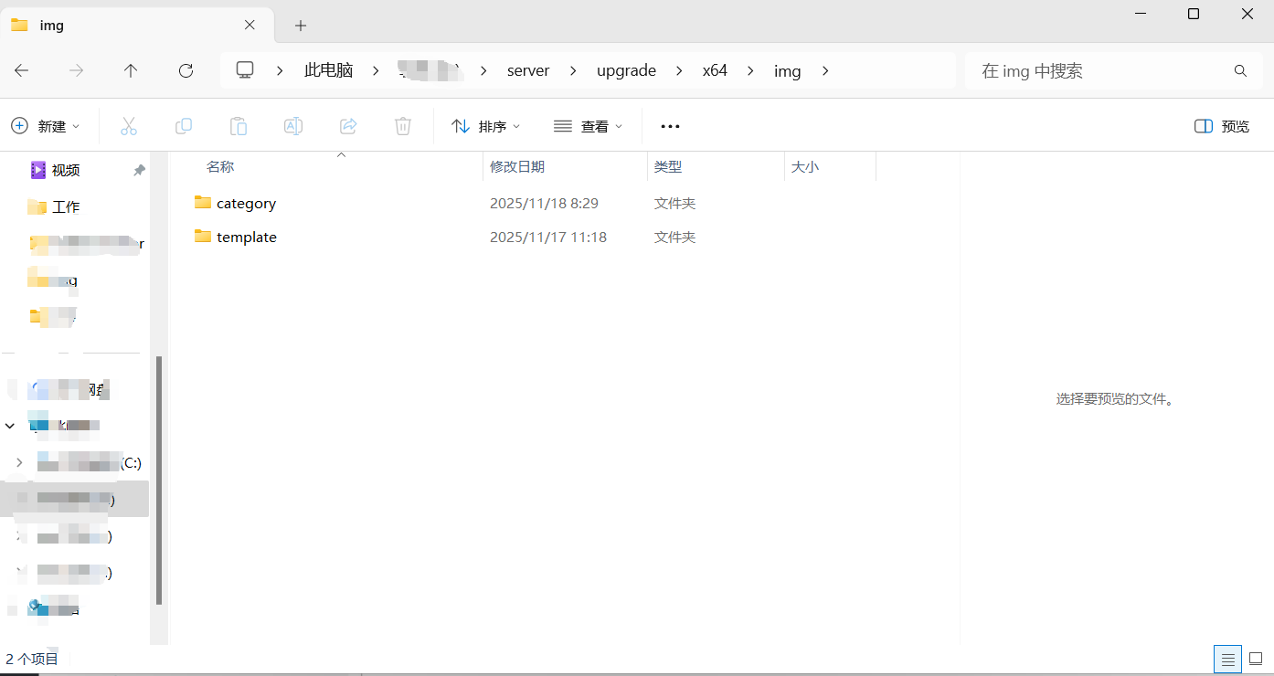 如果服务器要放置图标则需要放置在serve-upgrade-X64(X86)目录下新建一个img文件夹,在img文件夹下放置template和category,将图标放置在对应的目录下
