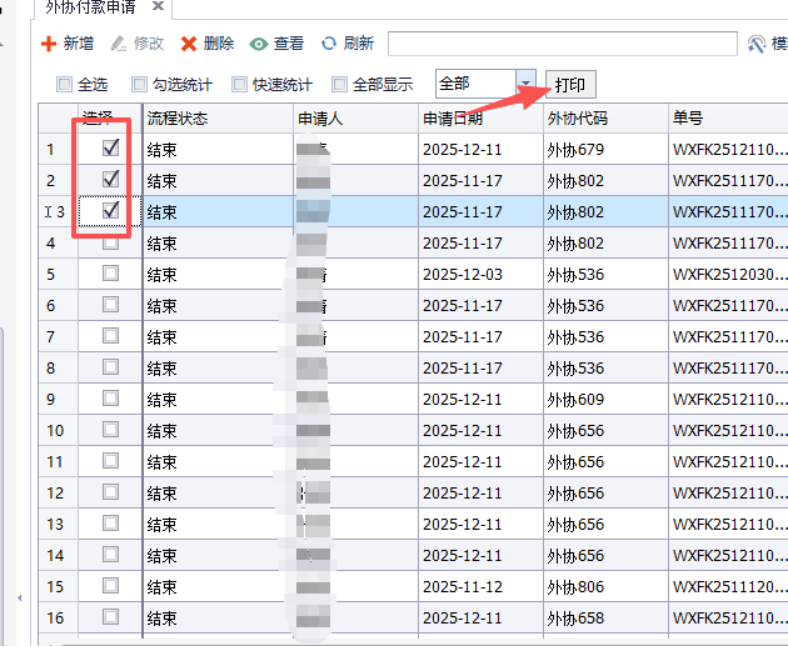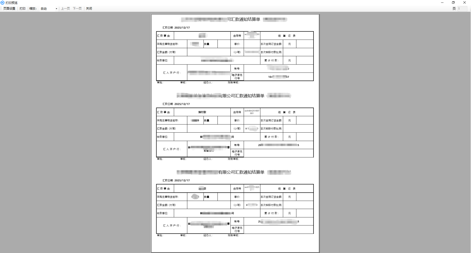 1.根据我们需要打印的表单数据设置打印模板,例如我们需要批量打印办款单: