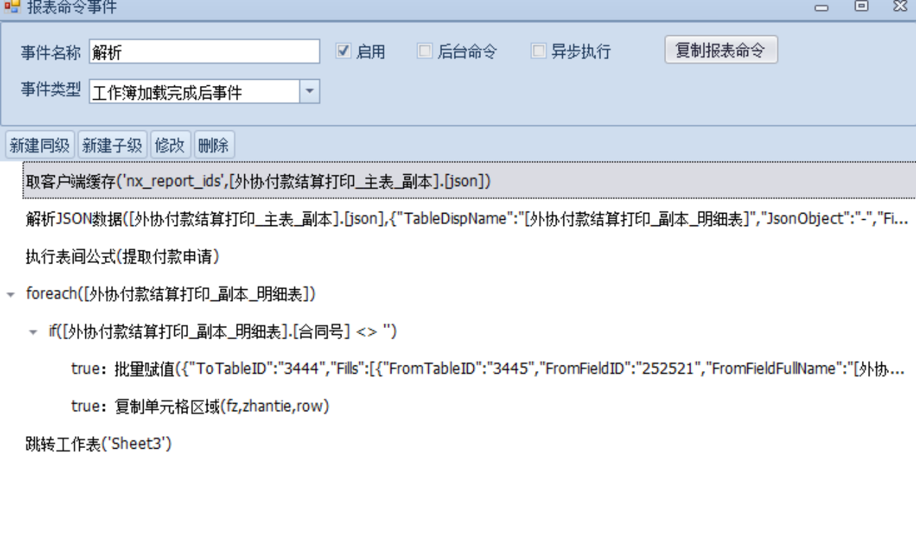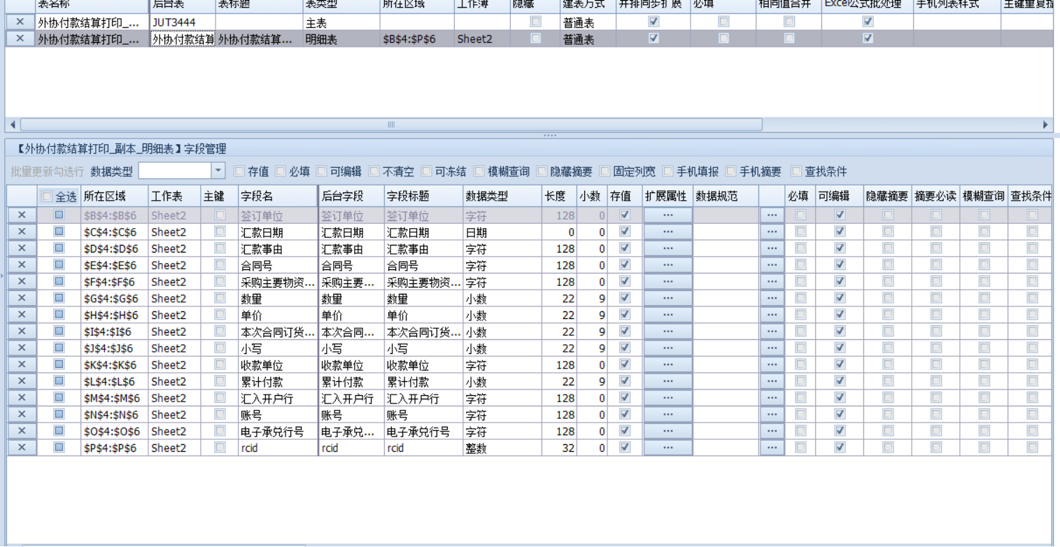 3.打印模板设置报表命令,获取所需要的信息到辅助明细,再将明细数据逐一赋值到打印模板,并通过区域复制粘贴将打印样式批量展现