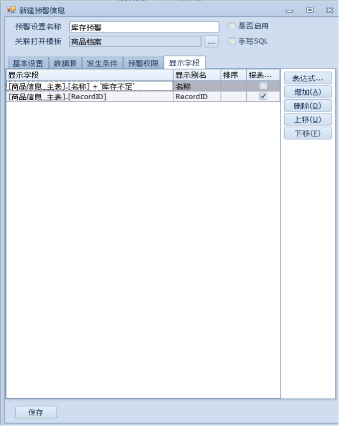 在预警消息列表中就可以通过勾选的报表标识链接到对应的单据